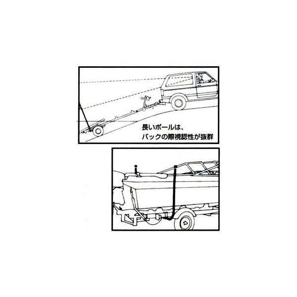●牽引後退時にトレーラーの位置を把握するのにも役立ちます。●水面上に突き出したポールは水中のトレーラーの位置を示します。 ●長く白いポールはボートからの視認性も良く、車でバックする時も目印となります。 ●一般的なトレーラーのフレーム(3”x5”迄)に取付可能 ●サイズ:画像参照