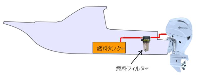 ●ガソリンタンク内に海水や水などが混入していた場合、フィルター内の赤いボールが浮いて一目でわかります。