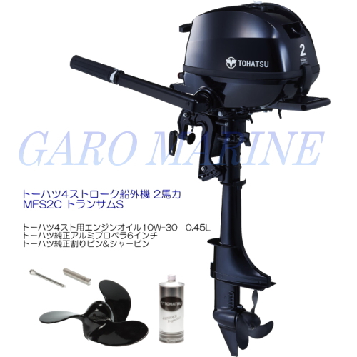 トーハツ 船外機 4ストローク 2馬力 MFS2C トランサムS アルミプロペラ&エンジンオイル0.45L&シャーピン&割りピンセット TOHATSU 送料無料